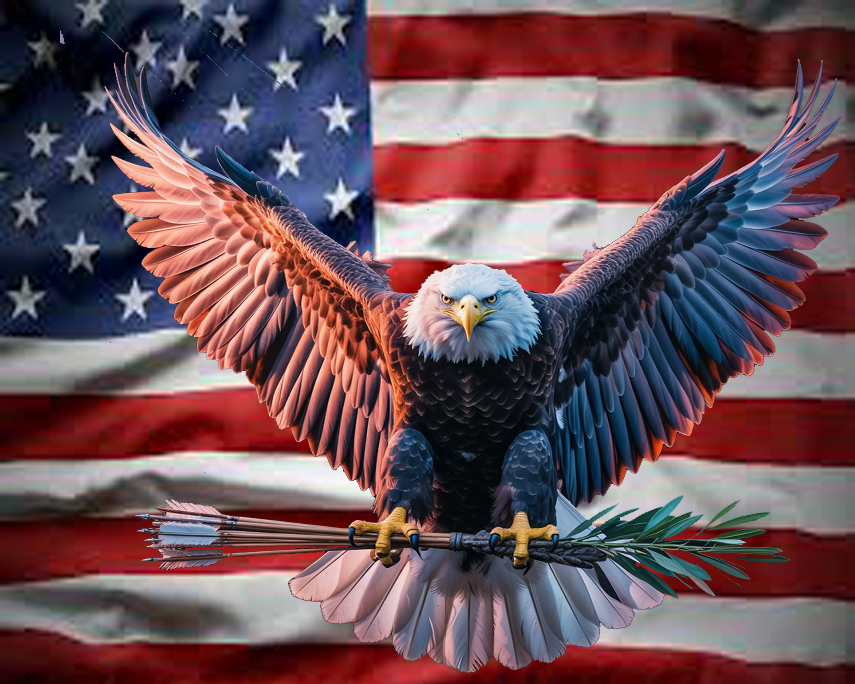 A super-realistic, powerful eagle set against a striking American flag backdrop/Premium T-shirt | Bella + Canvas 3001